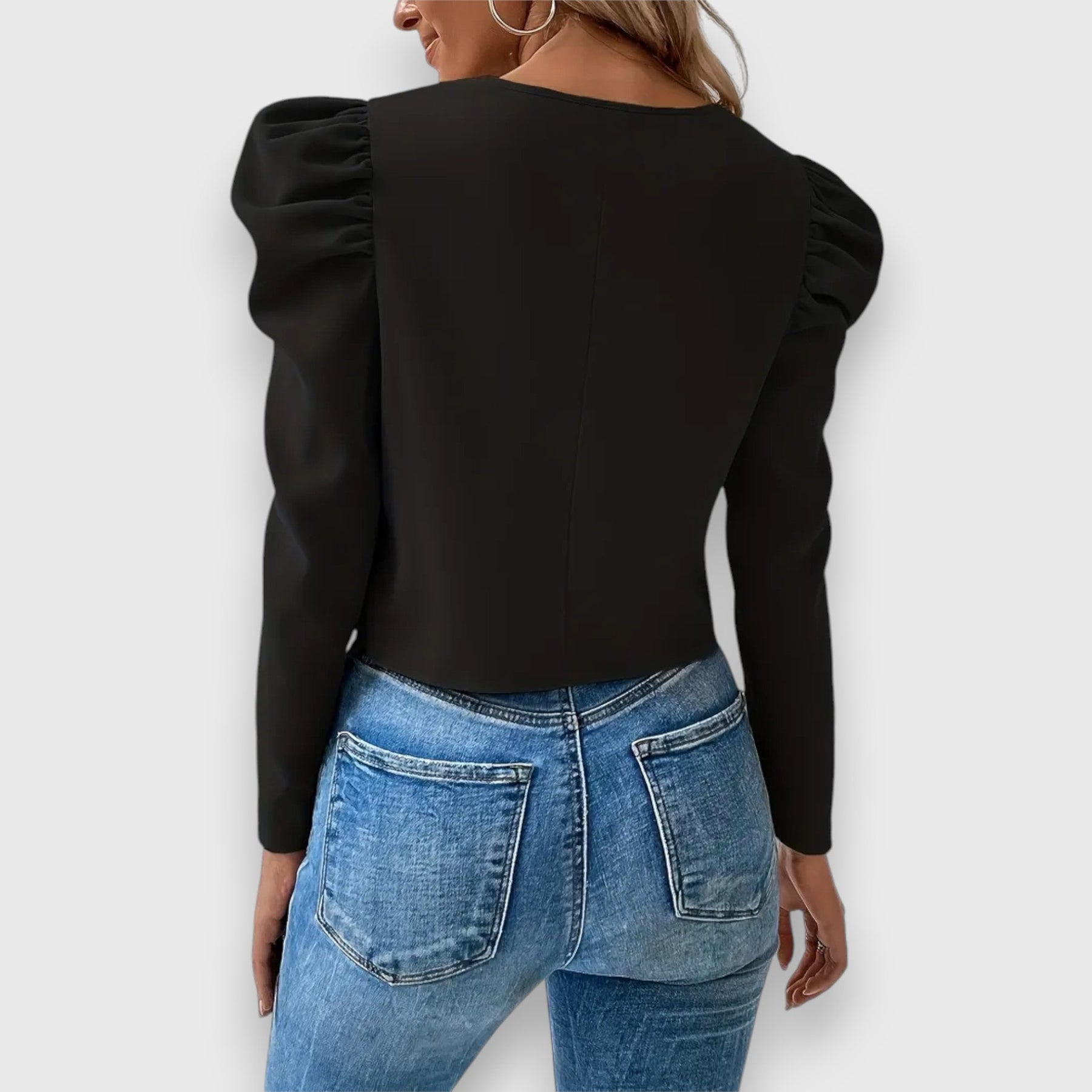 The Léa cropped jacket impresses with its simple yet elegant design. The modern puffed sleeves give it a feminine touch, while the zipper closure offers a practical and versatile wearing option. Perfect for stylish outfits for any occasion.